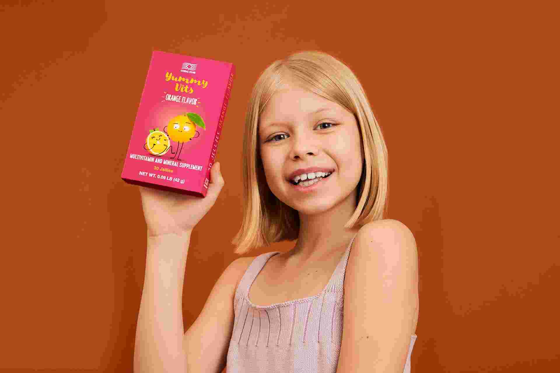 (1 jelly)% DV* Calories< 5 Total Fat< 0,5 g < 1% Vitamin A (as retinyl palmitate)0,49 mg / 833 IU 54% Vitamin D3 (as cholecalciferol)5 mcg / 200 IU 25% Vitamin E (as d-α-tocopherol)3,5 mg / 5 IU 24% Vitamin B6 (as pyridoxine HCl)0,6 mg 35% Folate (as folic acid)100 mcg 25% Vitamin B12 (as cyanocobalamin)0,5 mcg 21% Pantothenic acid (as D-calcium pantothenate)1 mg 20% Iodine (as potassium iodide)20 mcg 13% Selenium (as sodium selenite)10 mcg 18% Choline (as choline bitartrate)20 mg - Other Ingredients: Xylitol, purified water, sunflower oil, sorbitol, gelatin, arabic gum, trisodium citrate, natural orange flavor, paprika extract. * Percent Daily Values – Daily Value not established.